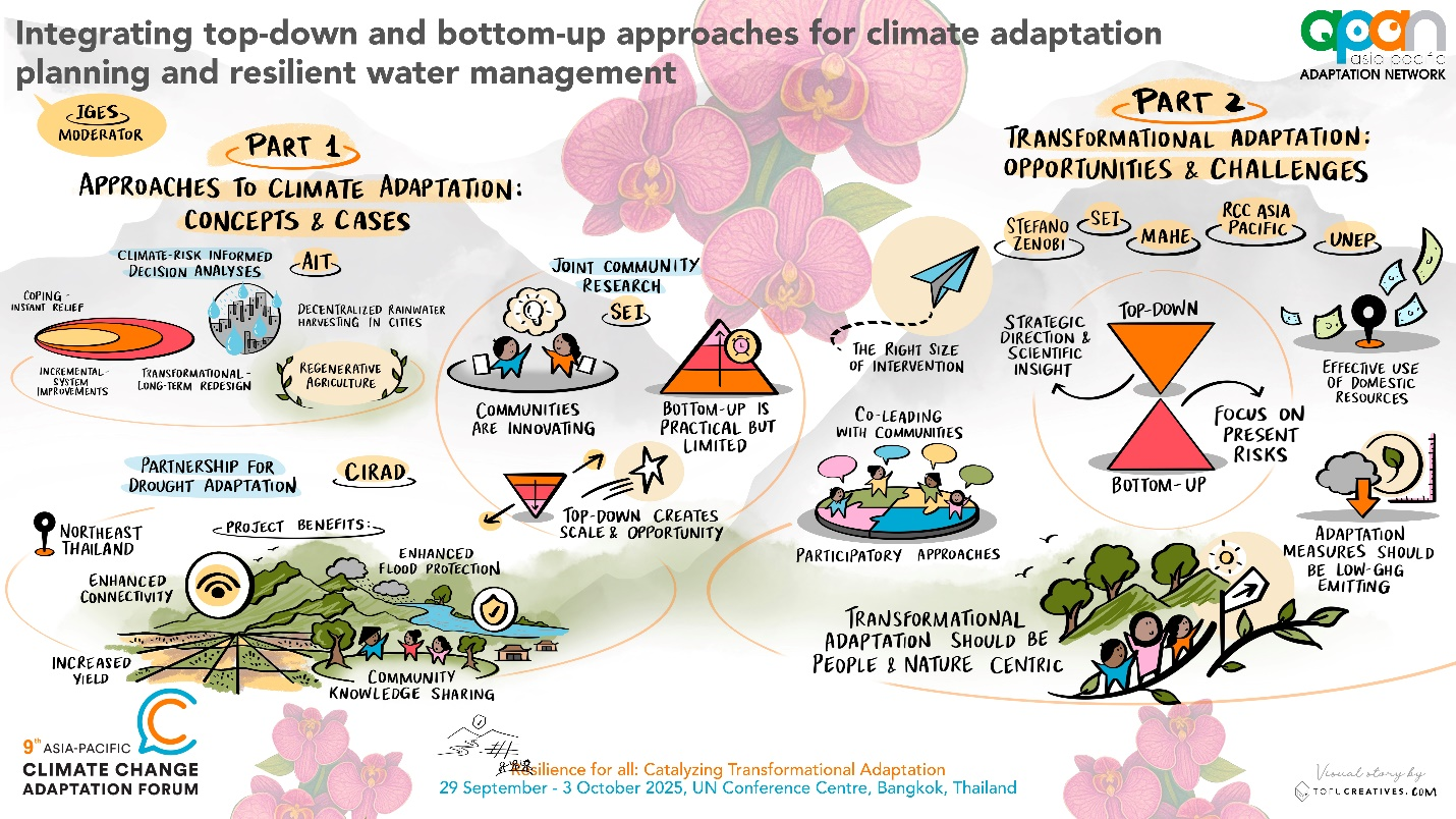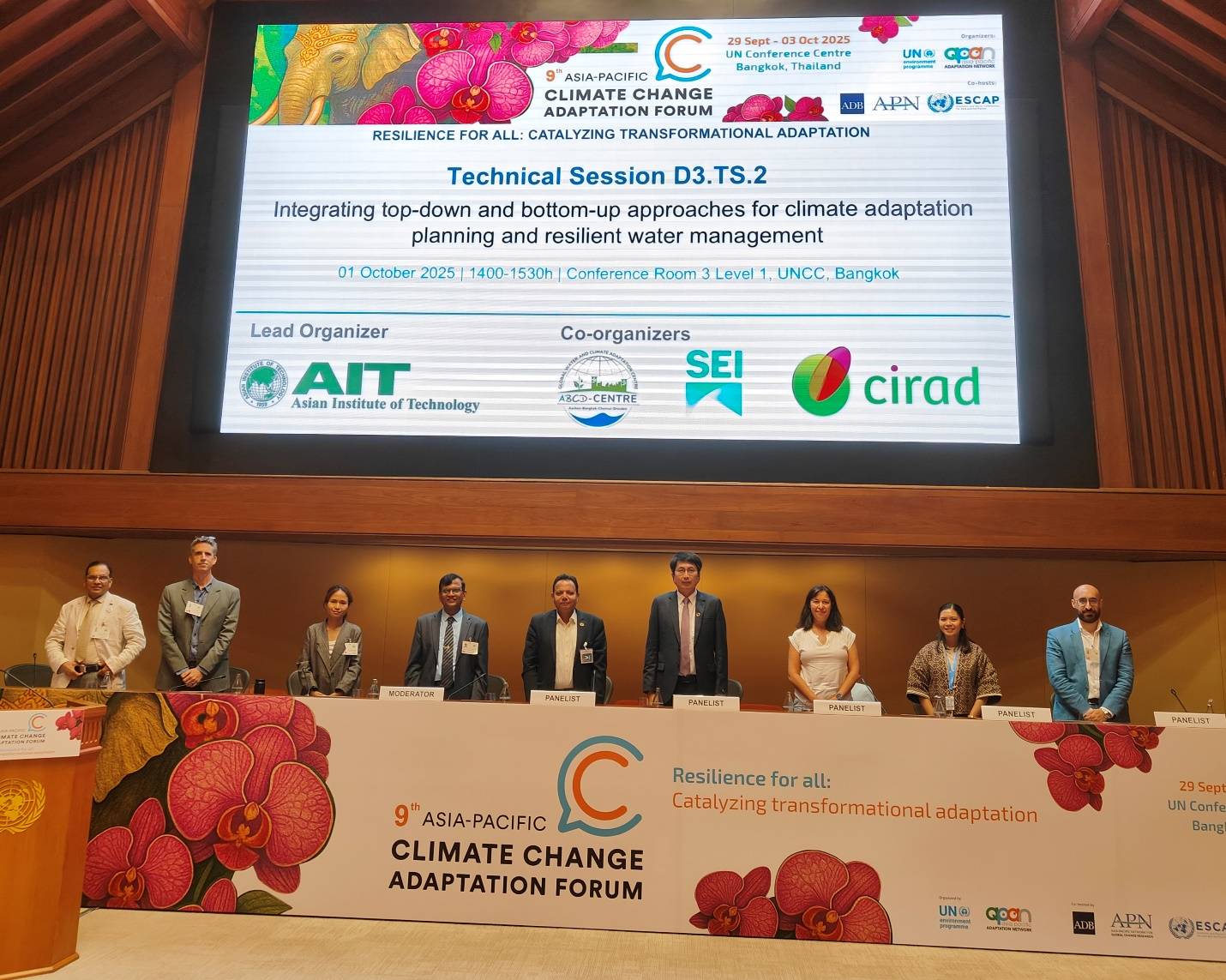 Jointly convened by the Centre for Water and Climate Adaptation (CWCA) at the Asian Institute of Technology (AIT), the ABCD-Centre, the Stockholm Environment Institute (SEI) Asia, and CIRAD, the session explored how large-scale climate science (top-down) and local knowledge, needs, and priorities (bottom-up) can be effectively integrated to strengthen adaptation planning.